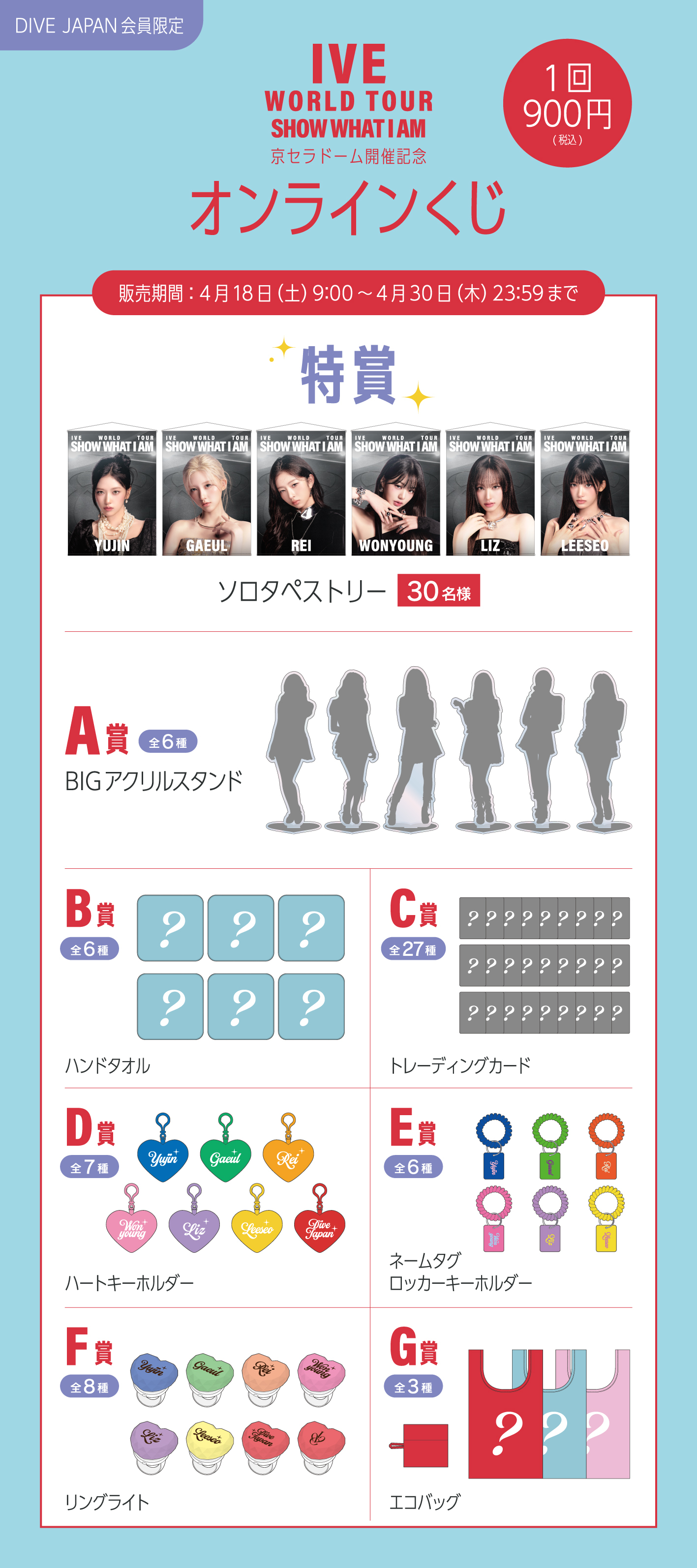 「IVE WORLD TOUR ‘SHOW WHAT I AM’ IN JAPAN」京セラドーム大阪公演開催記念、IVE JAPAN OFFICIAL FANCLUB 「DIVE JAPAN」会員限定オンラインくじの販売が決定いたしました!