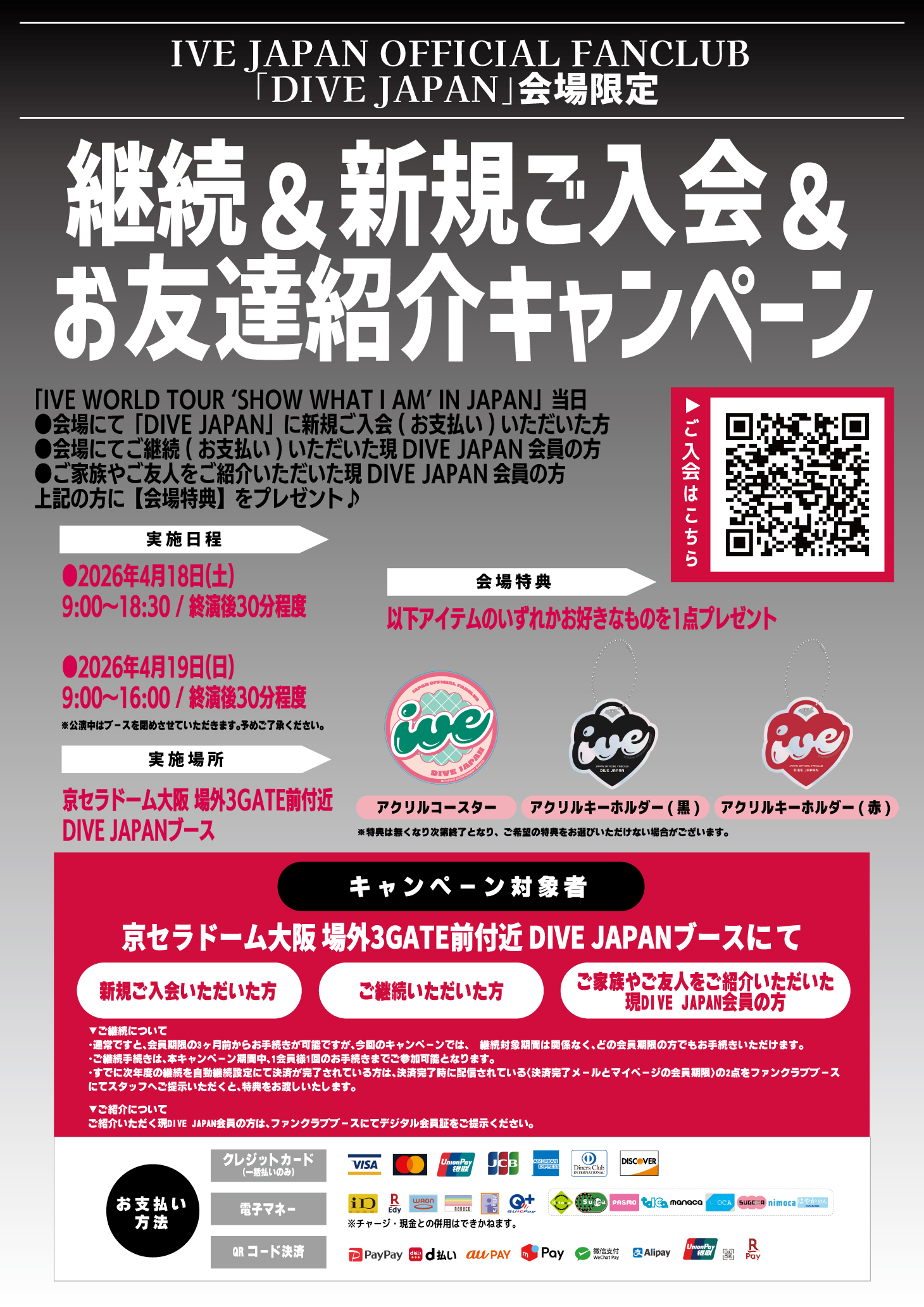 「IVE WORLD TOUR ‘SHOW WHAT I AM’ IN JAPAN」【会場限定】DIVE JAPAN新規ご入会&ご継続&お友達紹介キャンペーン実施決定!